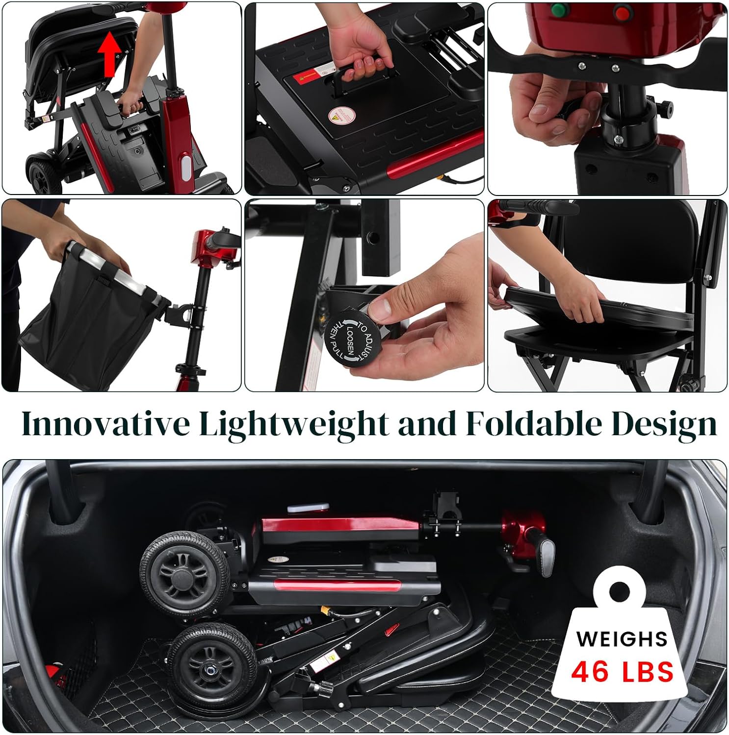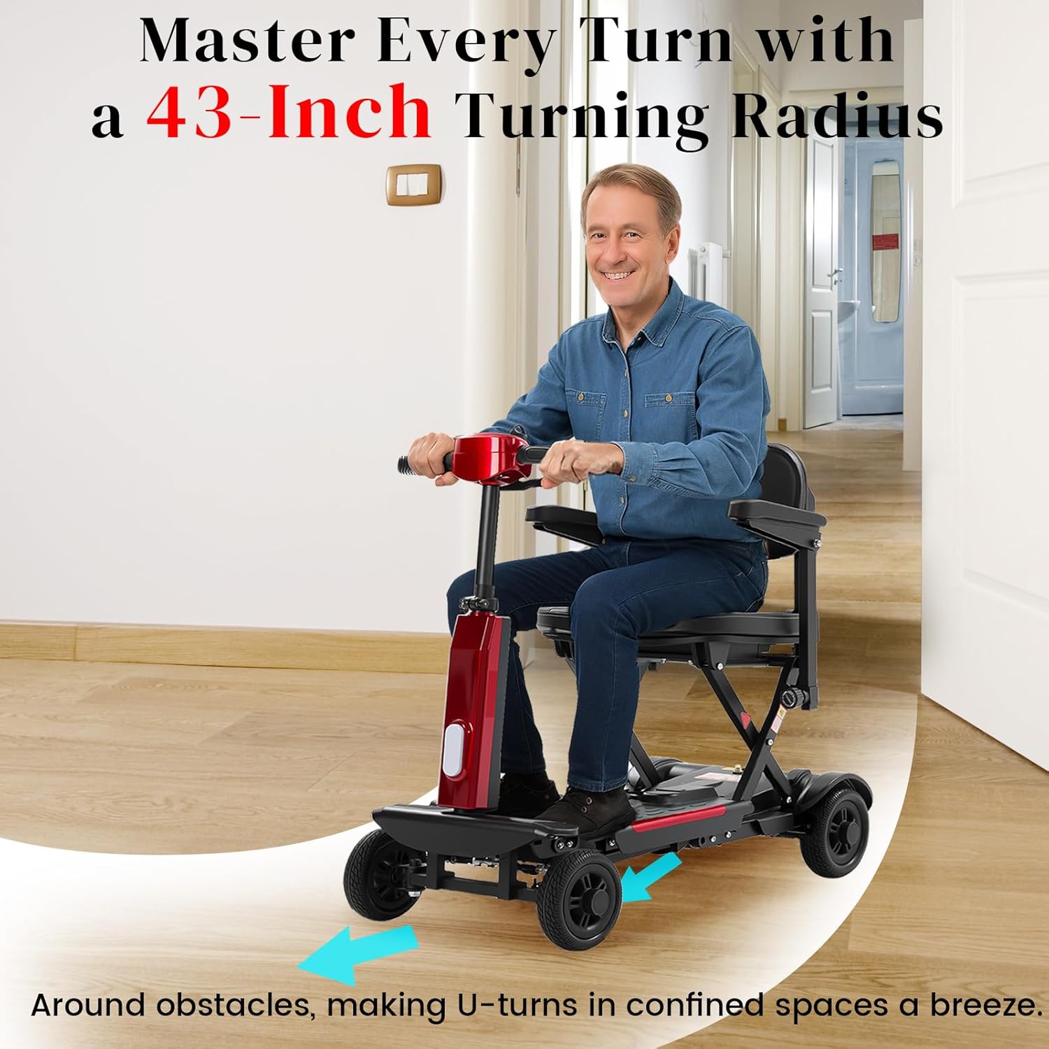Unique Half-Folding Design for Ultimate Portability:Unlike traditional scooters that fold from the front, the MS02-F features a unique half-folding design—it folds directly in the middle to achieve an ultra-compact shape for easy storage. This innovative structure sets it apart as one of the lightest folding mobility scooters on the market, making it perfect for users who value portability and minimal storage space